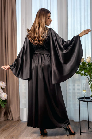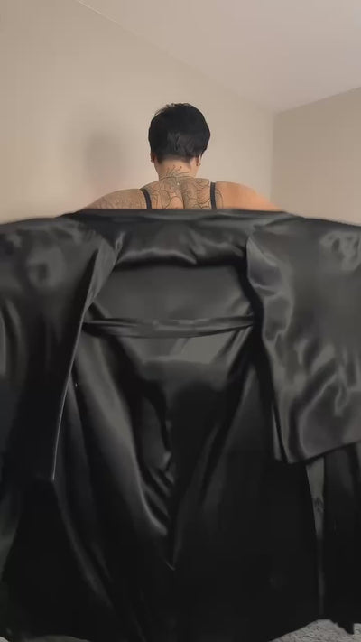 Black Gothic Satin Robe with Wide Sleeves – Sexy Boudoir & Gift Idea