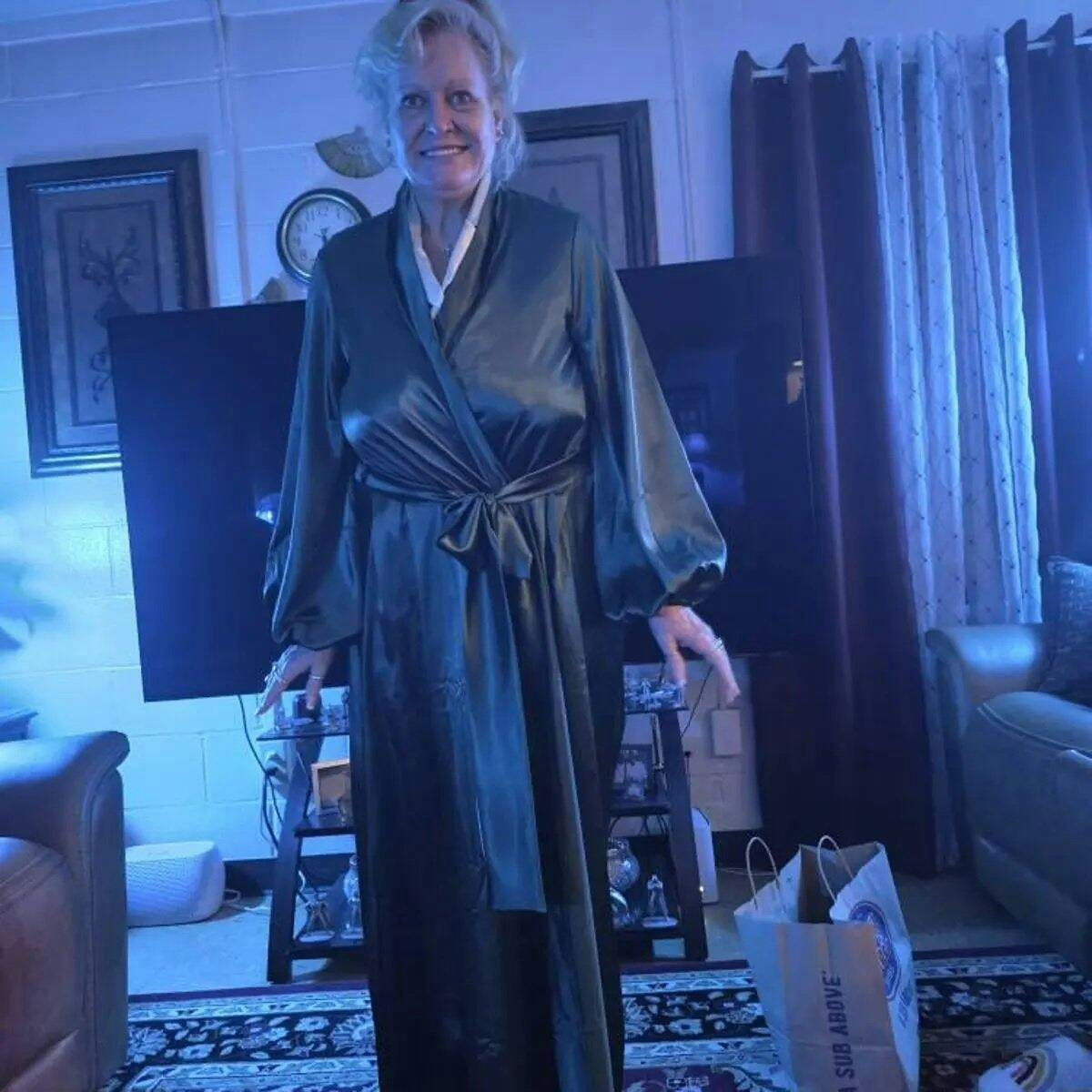 Luxurious in both aesthetic and feel, this wrap robe showcases a sophisticated emerald hue that commands attention. The structured wrap silhouette flatters the figure while voluminous balloon sleeves add dramatic flair to every gesture. Crafted from supple stretch satin, the piece balances indulgent comfort with polished elegance — ideal for intimate evenings or creating striking visual moments. A versatile essential that elevates any wardrobe with timeless refinement.