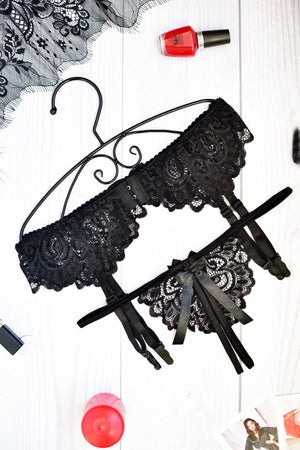 Lace Lingerie Set: Garter Belt and Thong Panty