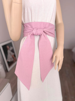 Elevate your special occasion attire with our colorful linen sashes for dresses. Choose between a bow or a simple knot with elegant tails to add sophistication to any dress. Wear it tied in the front, back, or to the side.
