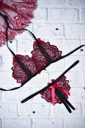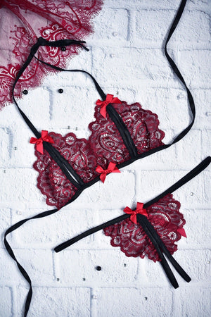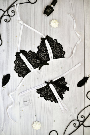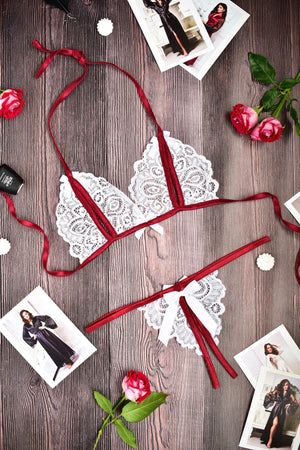 Unleash your playfulness with our bra & thong set. Perfect for weddings and honeymoons, it will make you feel confident, daring, and seductive. Adjust the fit with the lace ties and add excitement with the crotchless design.