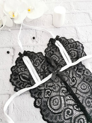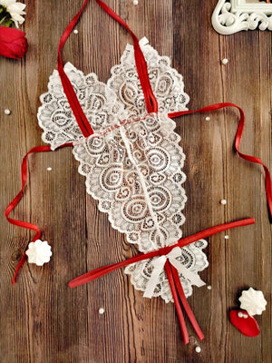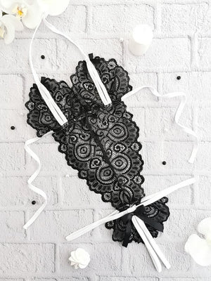 Embrace your boldness with our seductive lace teddy lingerie, crafted to inspire excitement and adventure. This adaptable piece brings a blend of sensuality and elegance to any intimate setting. Ideal for surprising your partner or intensifying passion, it’s an essential addition to your lingerie wardrobe. The stretch lace ensures an impeccable fit, while adjustable ties at the neck and back enhance its captivating charm.