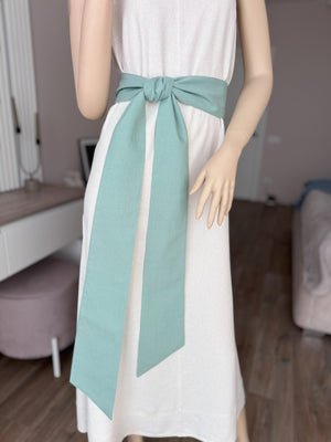 Elevate your special occasion attire with our colorful linen sashes for dresses. Choose between a bow or a simple knot with elegant tails to add sophistication to any dress. Wear it tied in the front, back, or to the side.