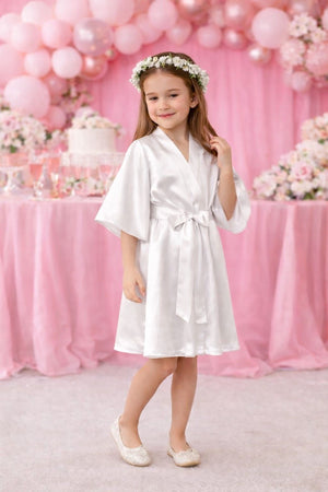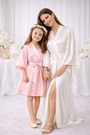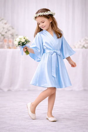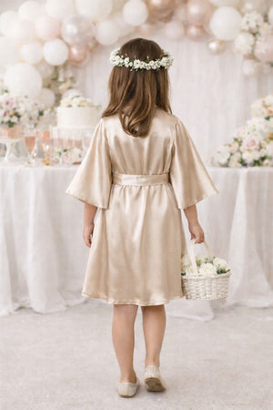 This elegant junior satin robe is designed especially for flower girls and bridal mornings. Crafted from smooth, lightweight satin, it drapes beautifully and feels gentle on the skin β perfect for all-day comfort and unforgettable photos.