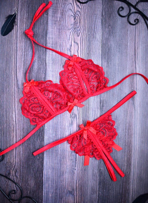 Provocative Lingerie Set: Bra & Crotchless Thong