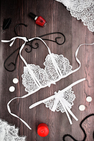 Unleash your inner seductress with our lace lingerie set. Includes open cup bra and crotchless thong with adjustable lace straps for a perfect fit. Shop now for an unforgettable wedding night and honeymoon.
