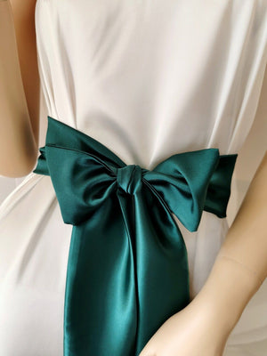 Add an elegant touch to your bridesmaid, wedding, or special occasion attire with this luxurious satin waist sash. Choose to tie it in a bow or simple knot, worn in the front, back, or side. This white satin sash adds a sophisticated touch to any outfit.