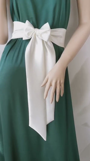 This satin sash belt comes in three soft, elegant shades — perfect for bridal mornings, romantic photoshoots, and refined special-occasion styling. The smooth satin ties into a full, sculpted bow with long, flowing tails that add a polished, luxurious finish to any robe or dress.
